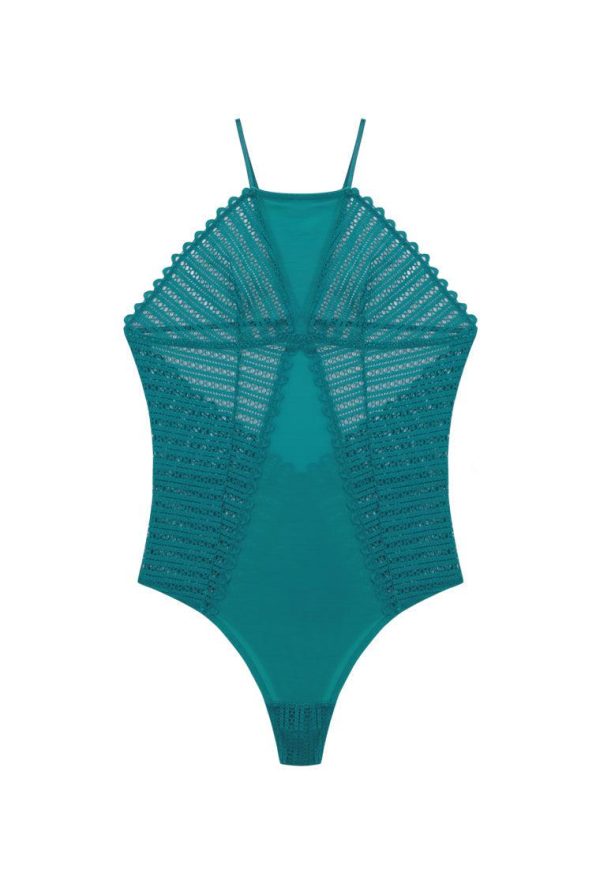 Inspirado en Maui, uno de los archipiélagos más bellos del mundo, este body de tul y encaje geométrico abierto te hará sentir especial y diferente.