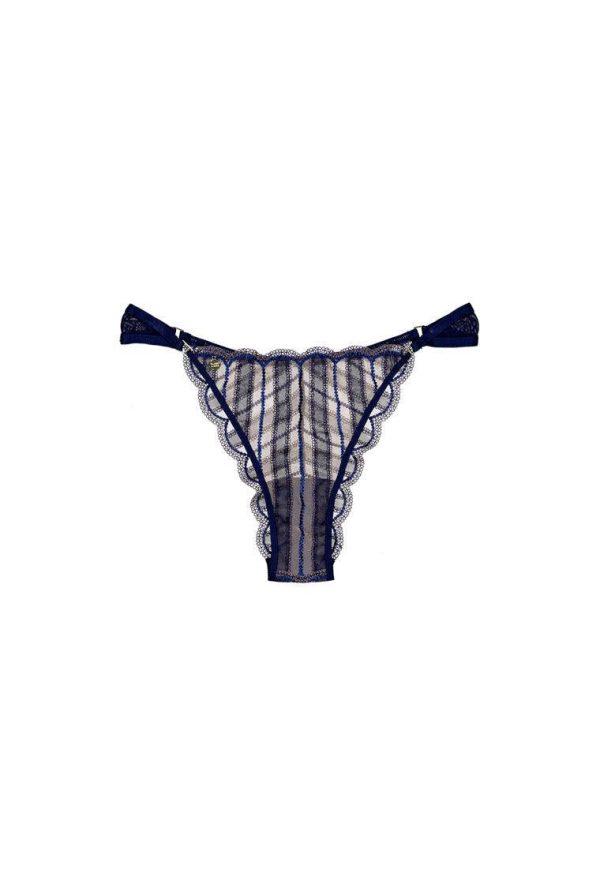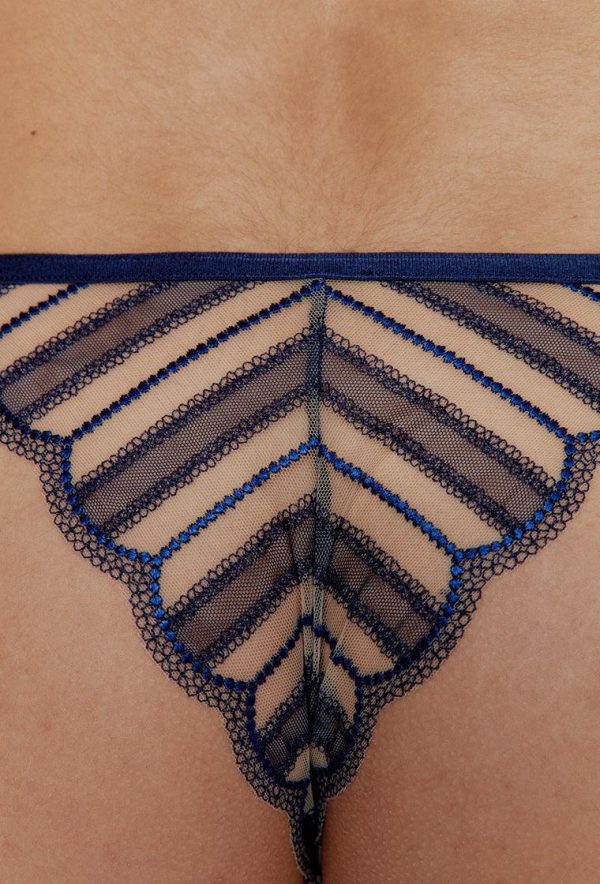Descubre nuestra braga brasileña Leila, una auténtica joya de lencería confeccionada en tul bordado de rayas con un precioso tono navy. Incorpora encantadores detalles laterales en tul que añaden un toque de sensualidad y elegancia. Este diseño te hará sentir irresistiblemente femenina y segura en cada momento.