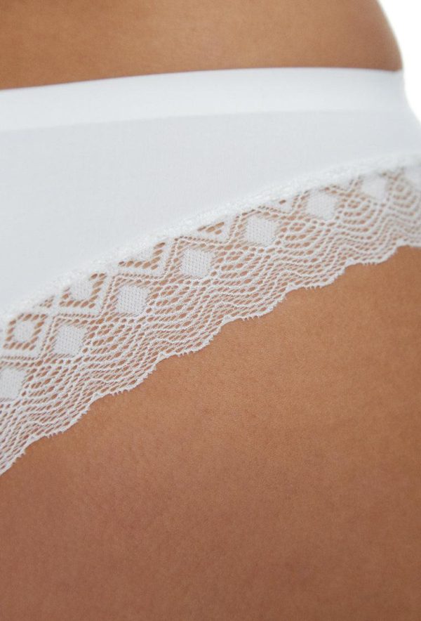 Descubre la braga clásica que enamora con su encaje geométrico semitransparente y la suavidad exquisita de la microfibra para una experiencia de confort absoluto.