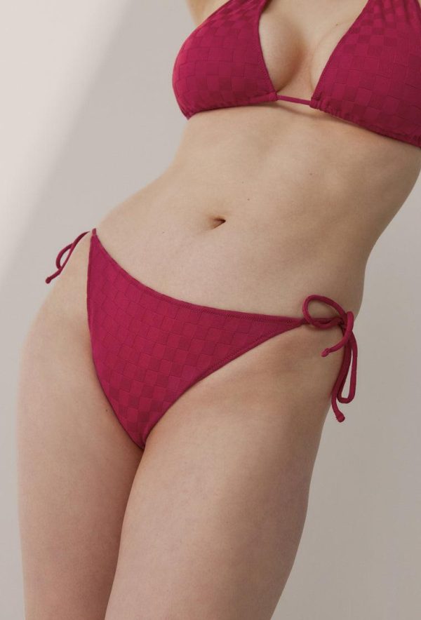 El estampado de cuadros siempre es tendencia, también en formato bikini. Braga estilo brasileña con lazadas laterales para un ajuste perfecto. Detalle de logo en la parte trasera.