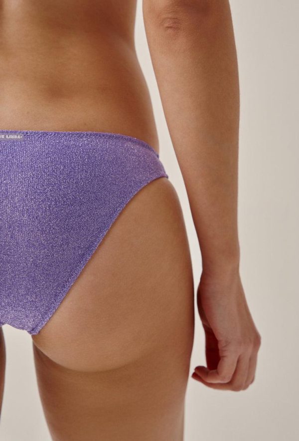 Braguita escotada estilo clásica en tejido de mezcla de hilos metalizados. Detalle de logo en la parte trasera.