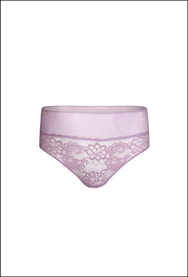 Braguita de cintura alta en tejido de encaje de diseño floral. Detalle tejido mesh en la parte delantera.