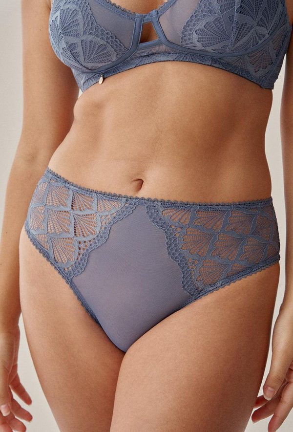 Braguita clásica con cintura alta en tejido combinado de encaje semitransparente y cómodo tul elástico. La modelo mide 1,74 cm y sus medidas son: 96-78-103. Lleva una talla M.