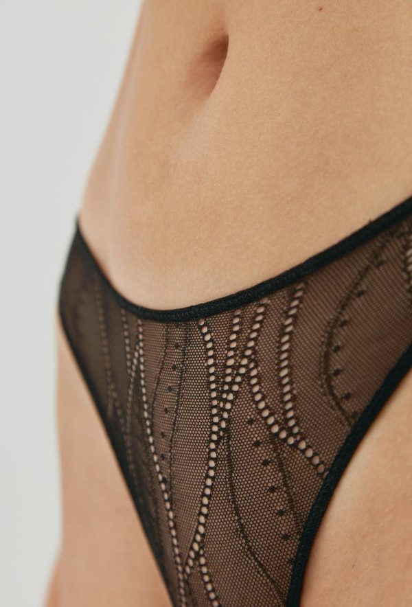 Braga tanga en tejido de encaje muy juvenil e innovador combinado con microfibra en la parte trasera.