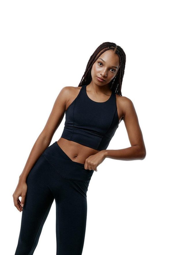 Legging deportivo de tejido compresivo con cintura alta en forma de V para ejercicios de alto impacto.