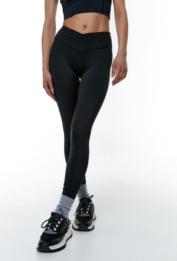 Legging confeccionado en tejido compresivo con cintura alta en forma de V. La cintura cruzada además de estilizar la figura ofrece una mayor comodidad.