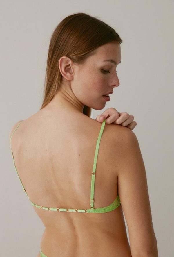 ¿Buscas un sujetador que te haga sentir única y especial? Hedy es nuestro bralette triangular de encaje semitransparente y tul, con preciosos detalles metálicos que brillan en cada ocasión especial (o simplemente cuando te apetece lucir radiante). Tirantes regulables y cierre trasero (1 posición) para un ajuste perfecto que te acompaña todo el día.
