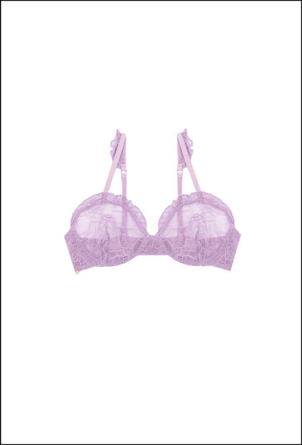 Un sujetador balconette muy especial gracias a sus detalles de volantes y semitransparencias. Sus ballenas semiflexibles y costuras mágicas consiguen un efecto aro que aporta un extra de sujeción a tu pecho. Detalle de tirantes de encaje.