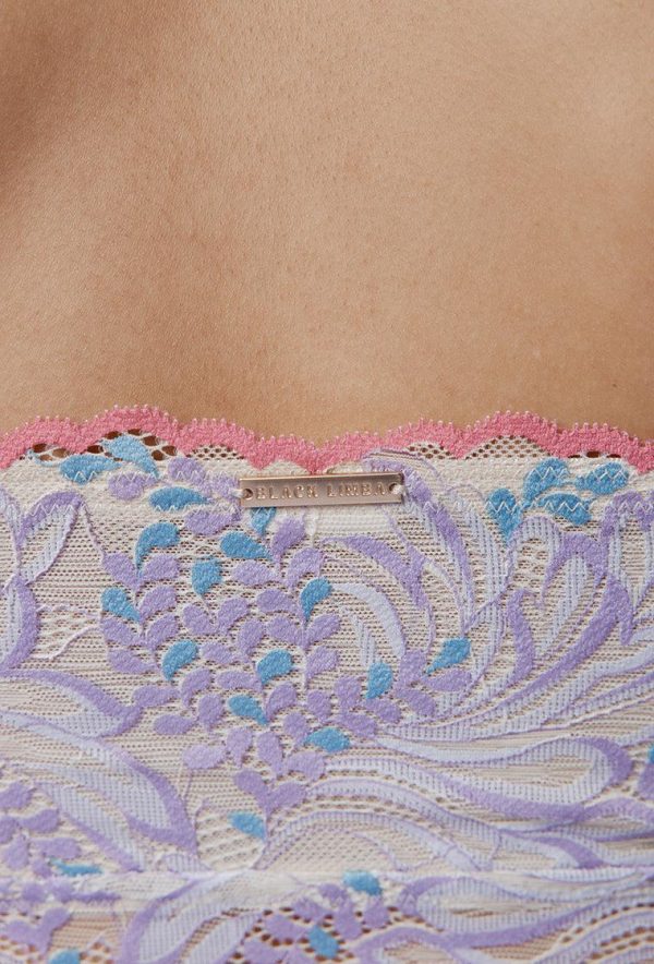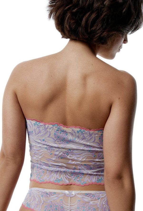 Bralette bandeau crop top, diseñado en encaje floral, con forro y foam extraíbles. Este diseño sin aro tiene tirantes extraíble y regulables. La definición de elegancia y sensualidad en una sola prenda.