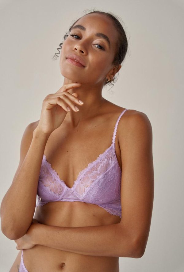 Un sujetador romántico de encaje floral y tul semitransparente con escote halter, copas con relleno extraíble, tirantes regulables y cierre trasero con dos corchetes. Sus ballenas semiflexibles y costuras mágicas consiguen un efecto falso aro que aporta un extra de sujeción a tu pecho. ¿Aún tienes dudas? Su favorecedora cintura asimétrica de encaje te convencerá.