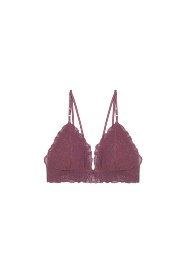 Sujetador halter de encaje floral con detalle de tiras en el escote y cierre delantero metálico. Su forro de algodón es súper suave y las copas incluyen un relleno ligero extraíble. Además, este modelo se adapta perfectamente gracias a los tirantes regulables.