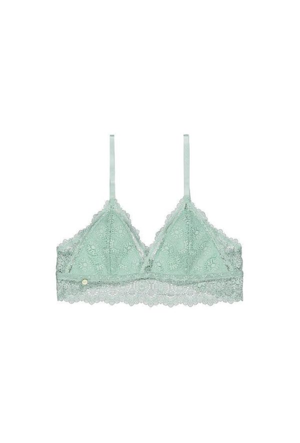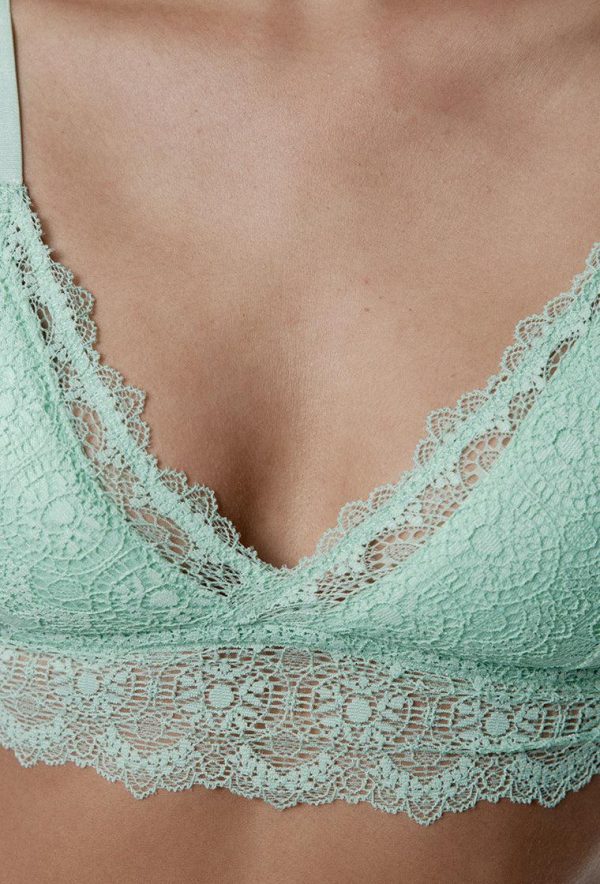 Bralette triangular Agatha, diseñado en encaje geométrico con escote cruzado. En un divertido color green, este diseño incluye copas de foam no extraíbles en algodón muy suave y detalle de acabado con blonda de encaje. Diseñamos pensando siempre en tu comodidad, tiene tirantes ajustables y cierre con corchetes en tres posiciones. Si te gustan los bralettes más románticos y cómodos este es el tuyo.