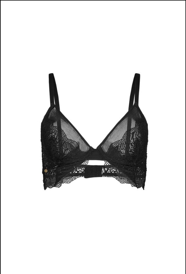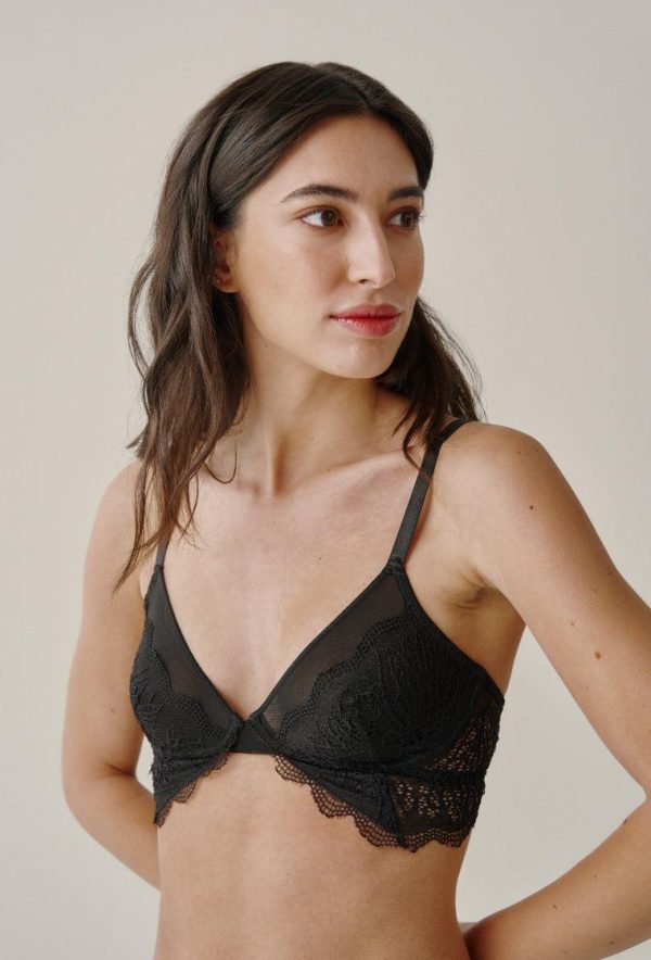 Sujetador sin aro en suave tejido de encaje y detalle de encaje degradado en el contorno. Efecto falso aro que recoge y realza el pecho. Forro semitransparente en la parte delantera. Tirantes regulables y cierre en la espalda para un mayor ajuste y comodidad.