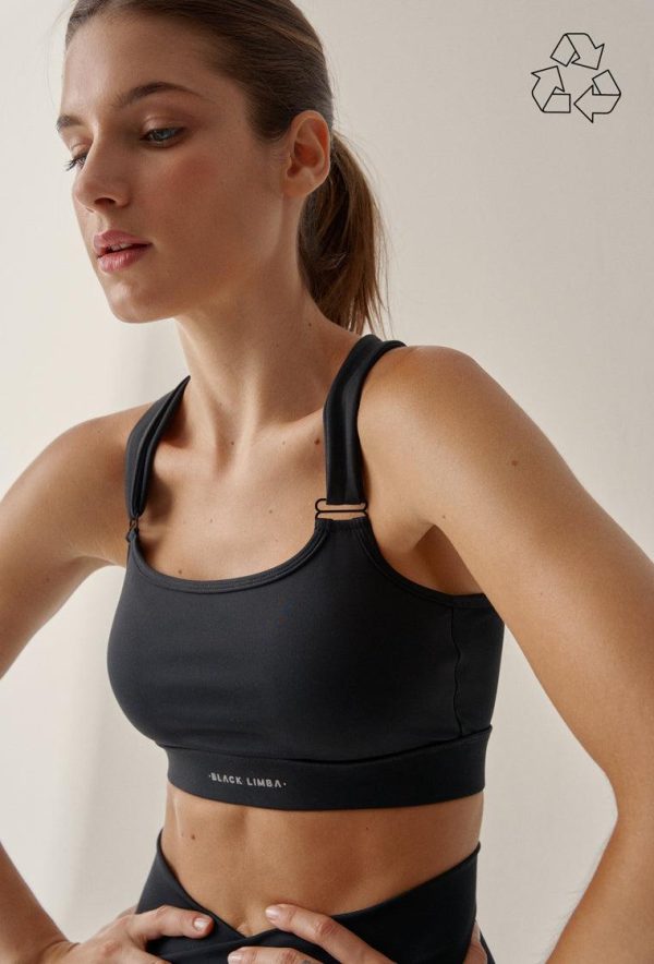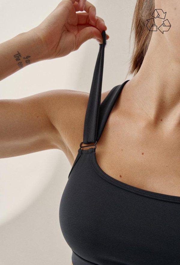 Top deportivo de alta calidad con sujeción superior en tejido compresivo que moldea tu figura, con espalda nadadora de diseño elegante y relleno ligero extraíble para mayor comodidad. Top totalmente ajustable gracias a su innovador cierre trasero con corchetes y tirantes anchos regulables con práctico velcro en la parte delantera. Detalle de abertura en la espalda que añade un toque de estilo deportivo. La modelo mide 1,78 y sus medidas son: 84-60-89.