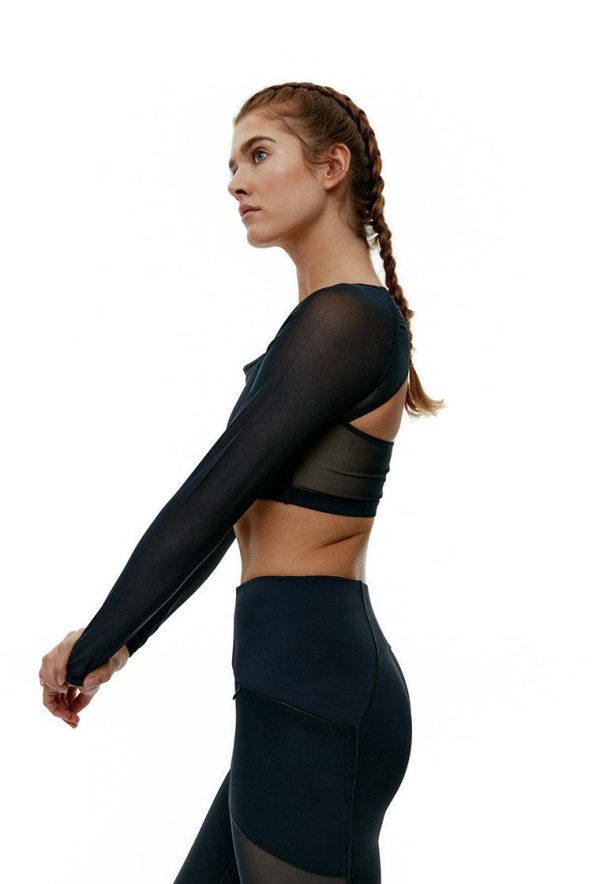 Prepárate para entrenar con estilo con el top deportivo crop de manga larga en tejido de mesh. Diseñado para ejercicio de medio impacto, este top combina funcionalidad y moda. La manga larga está elaborada en tejido de mesh, ofreciendo transpirabilidad y confort durante tus actividades. Presenta un escote recto y cuenta con foam extraíble para brindar soporte adicional. La espalda semi cubierta en mesh añade un toque de ventilación y estilo.