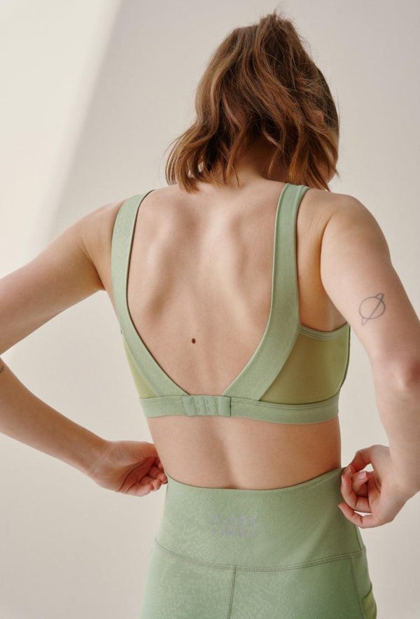 Top deportivo de escote redondeado y abertura en la espalda. Permite practicar deporte de medio y alto impacto. Confeccionado en tejido suave y ligero con cintura elástica en contraste. Cierre trasero con corchetes para una mayor adaptabilidad y sujeción. Con forro y foam extraíble que da forma y realza el pecho. Una prenda muy especial por su tacto, color y efecto piel de serpiente.